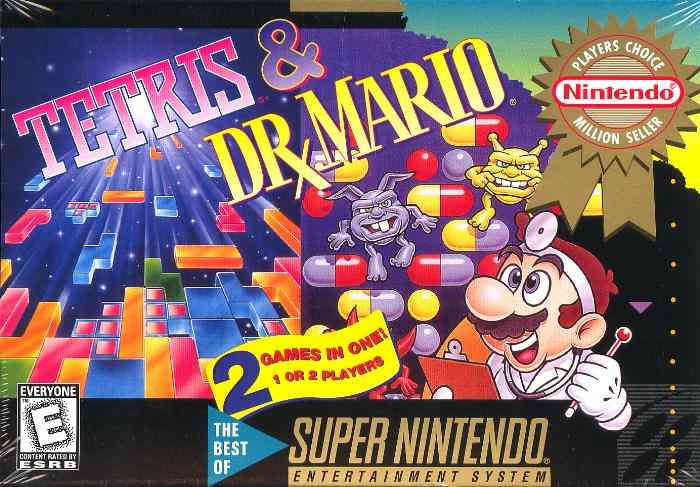 Tetris & Dr. Mario – esse é um jogo de Super Nintendo pra lá de divertido. É um remake dos clássicos Tetris (1984) e Dr. Mario (1990), do Nintendinho e Game Boy. Como o assunto é vírus, o destaque é para Dr. Mario. Nesse game, o jogador deve usar pílulas coloridas para derrotar os vírus espalhados pela tela. Os vírus vêm em vermelho, amarelo e azul, e devem ser eliminados pela combinação de duas ou mais pílulas da mesma cor na horizontal ou na vertical. O modo para dois jogadores é MUITO divertido, com eles tendo que limpar os vírus da forma mais eficiente possível nos diferentes estágios.