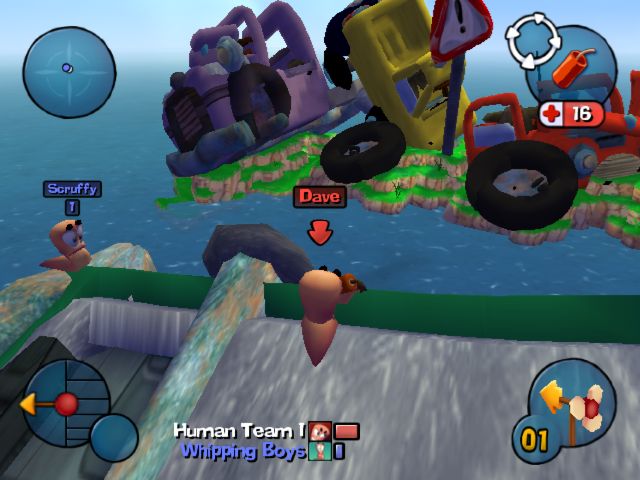 O arsenal de armas é imensa, onde se encontram a tradicional “bazooka”, ovelha explosiva, bananas explosivas, taco de beisebol, metralhadora, lança míssil e etc.